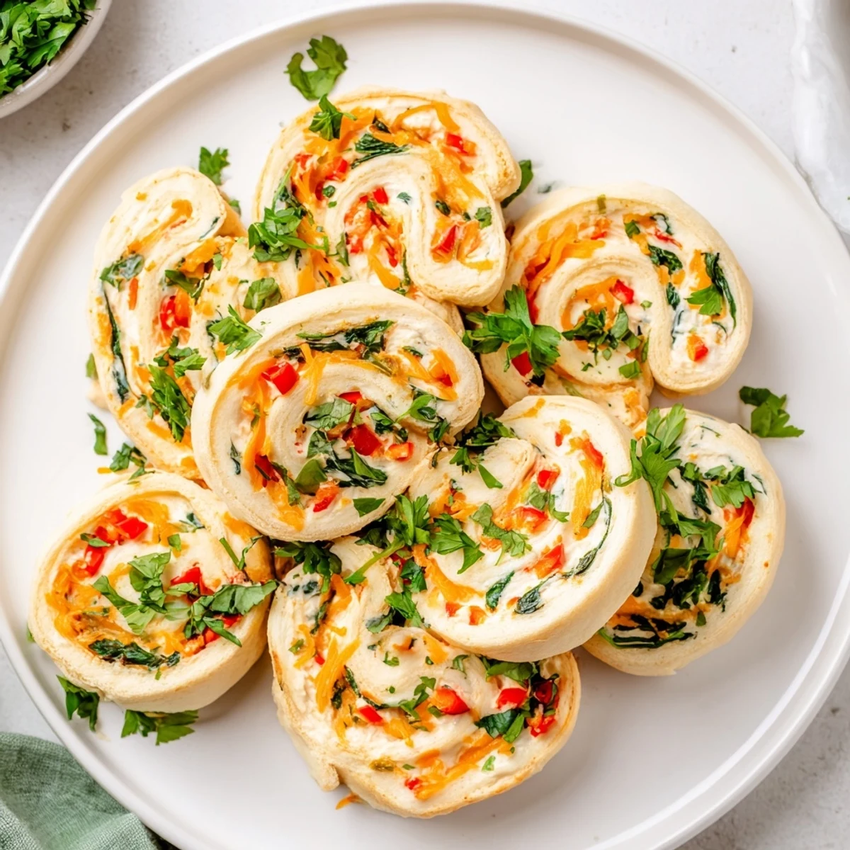 These delightful cream cheese pinwheels combine softened cream cheese with sour cream, sharp cheddar, green onions, red bell pepper, and seasonings. Spread the mixture onto flour tortillas, roll tightly, chill for easy slicing, then cut into colorful spirals. The result is a crowd-pleasing appetizer that's creamy, tangy, and packed with fresh vegetables. Make them ahead for stress-free entertaining.
