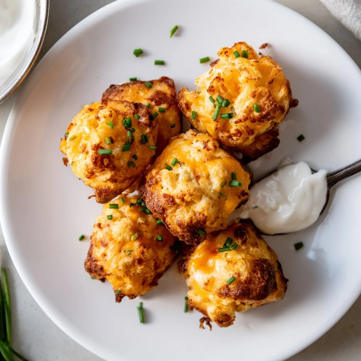 These irresistible golden puffs transform leftover mashed potatoes into crispy, cheesy bites. The mixture combines fluffy potatoes with sharp cheddar and savory Parmesan, fresh chives, and eggs to create a light, airy texture that puffs beautifully in the oven.