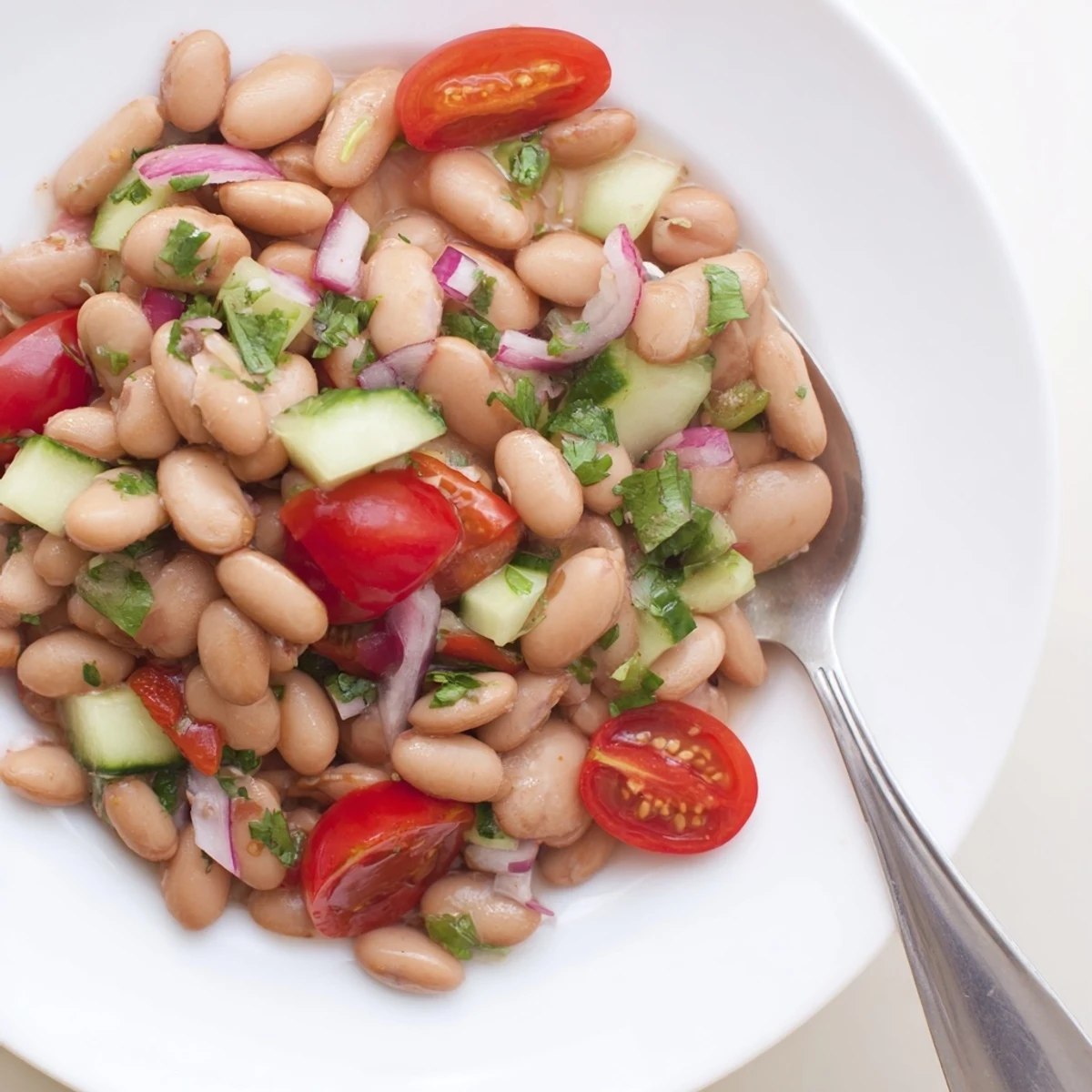 This vibrant pinto bean salad combines tender beans with crisp cherry tomatoes, cucumber, and bell pepper for a refreshing dish. The zesty lime dressing with garlic, cumin, and chili powder adds bright flavor that brings everything together.