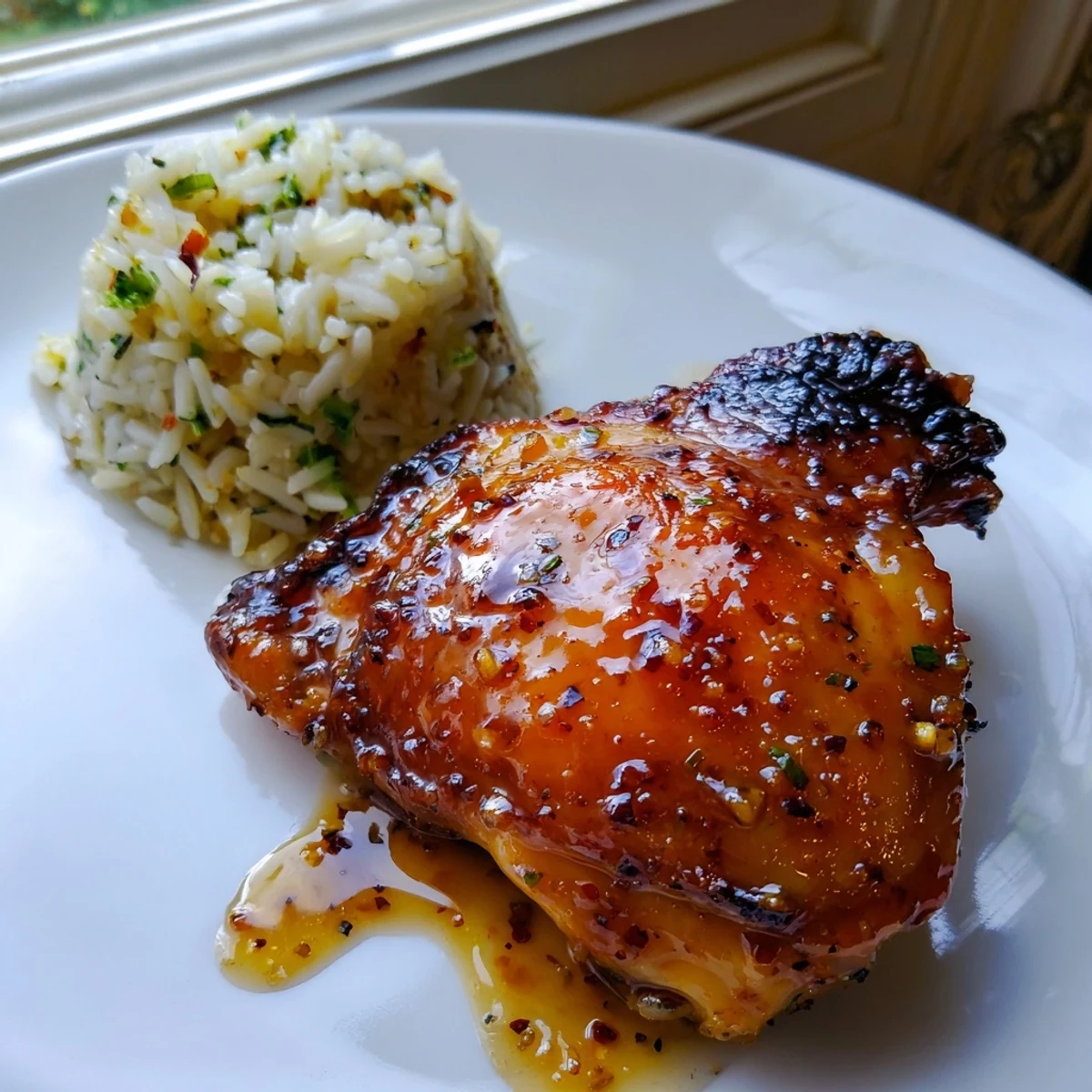 - Serve the glazed chicken with a generous scoop of herb rice and those crispy potatoes on the side.
