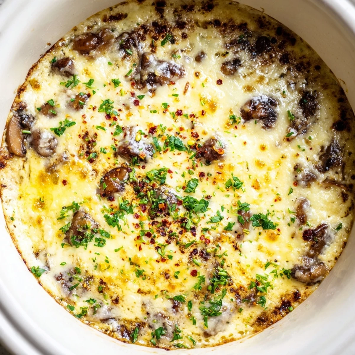 This indulgent appetizer transforms classic stuffed mushroom flavors into a warm, shareable dip. Sautéed cremini mushrooms with shallots and garlic fold into a velvety blend of cream cheese, sour cream, mozzarella, and Parmesan. After 20-25 minutes in the oven, the top turns golden and bubbly while the inside stays irresistibly creamy. Serve it warm with toasted baguette slices, crisp crackers, or fresh vegetable crudité.
